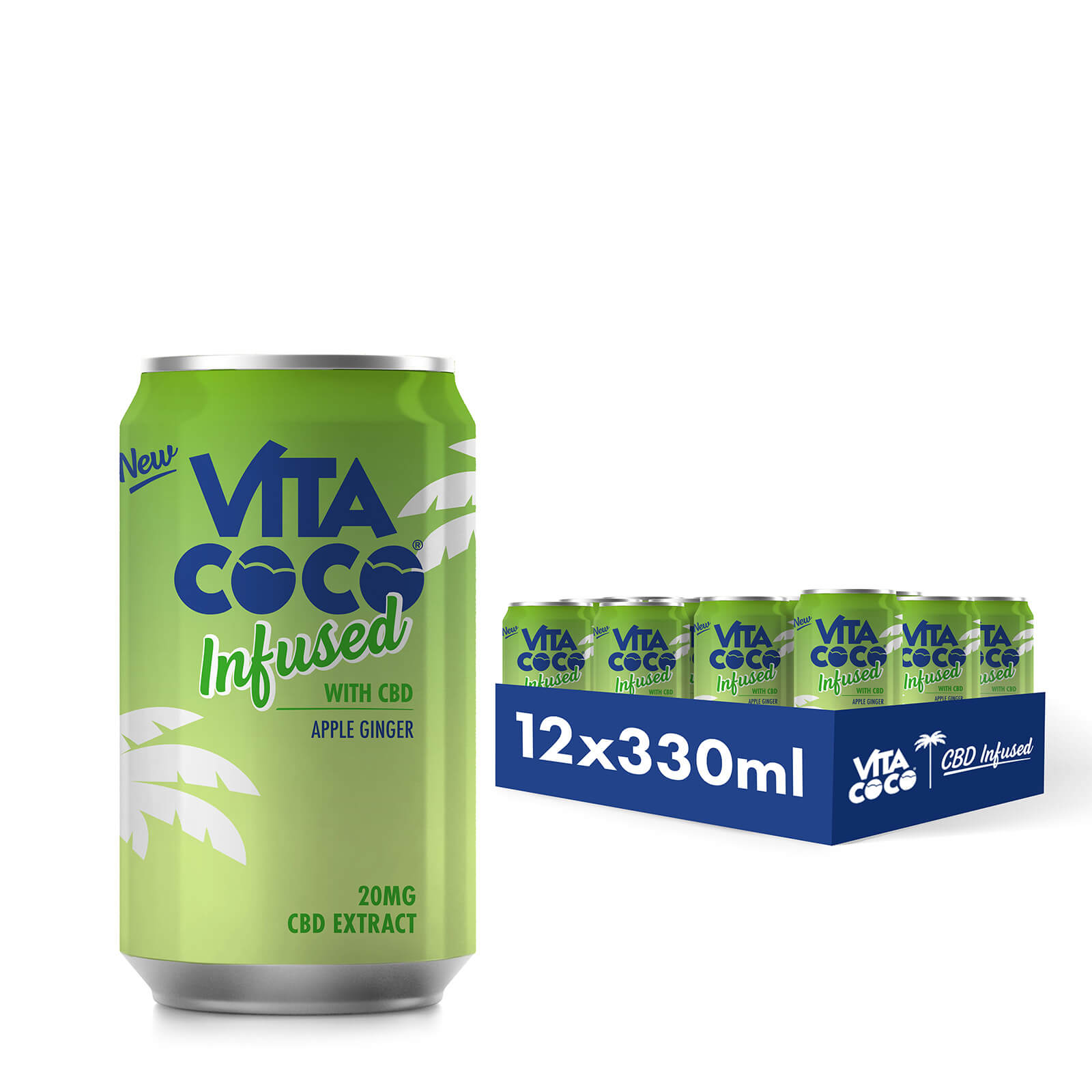 Apple Ginger: Carbonated Water, Coconut Water from Concentrate, Apple Essence (1.5%), Broad Spectrum Hemp Extract (CBD) (6mg/100ml), Citric Acid, Natural Ginger Extract (0.08%).